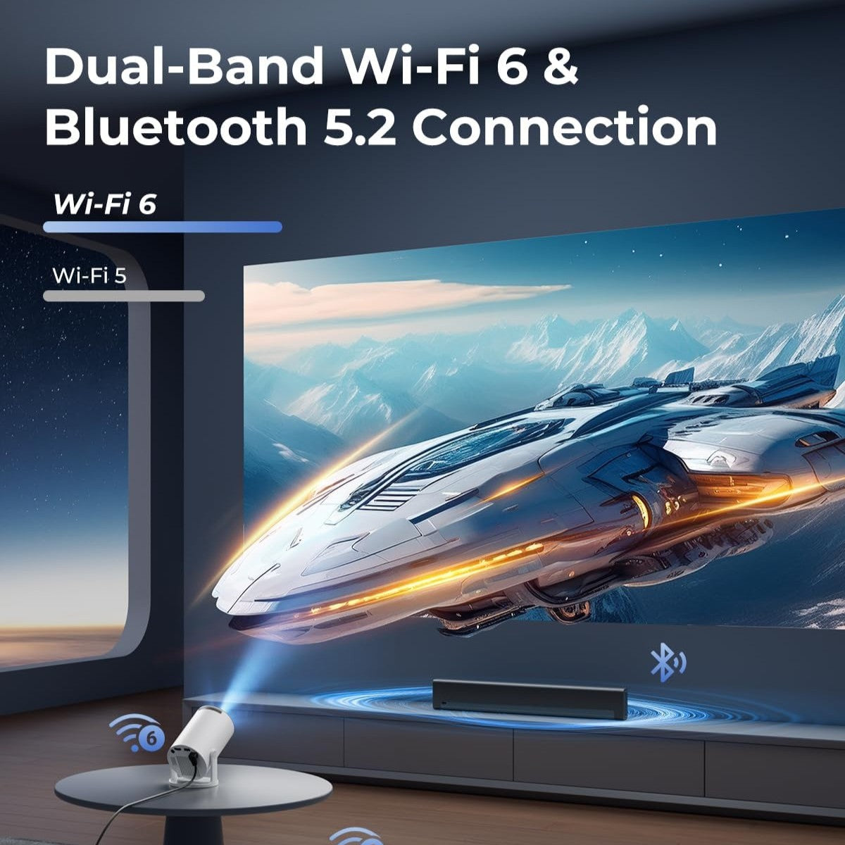 You can connect your phone, tablet, or laptop using WiFi, Bluetooth, HDMI or USB for quick and seamless projection.
